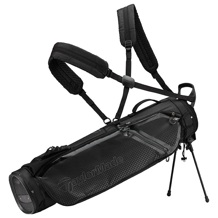 | TaylorMade Quiver Golf Pencil Bag Fantastic All Rounder With Great Features The TaylorMade Quiver Pencil bag is a great all round performer for summer, winter or holiday golf. If you prefer a super light carry bag that can fit a full set, this Quiver bag is your perfect partner. Featuring a 6.5 inch 3 way divider top and a padded double strap design. A new feature included is the micro stand system that prevents the top of the bag from coming into contact with the ground when not being carried. Complete with 4 pockets, this Quiver bag is a premium performer in the pencil bag category. |